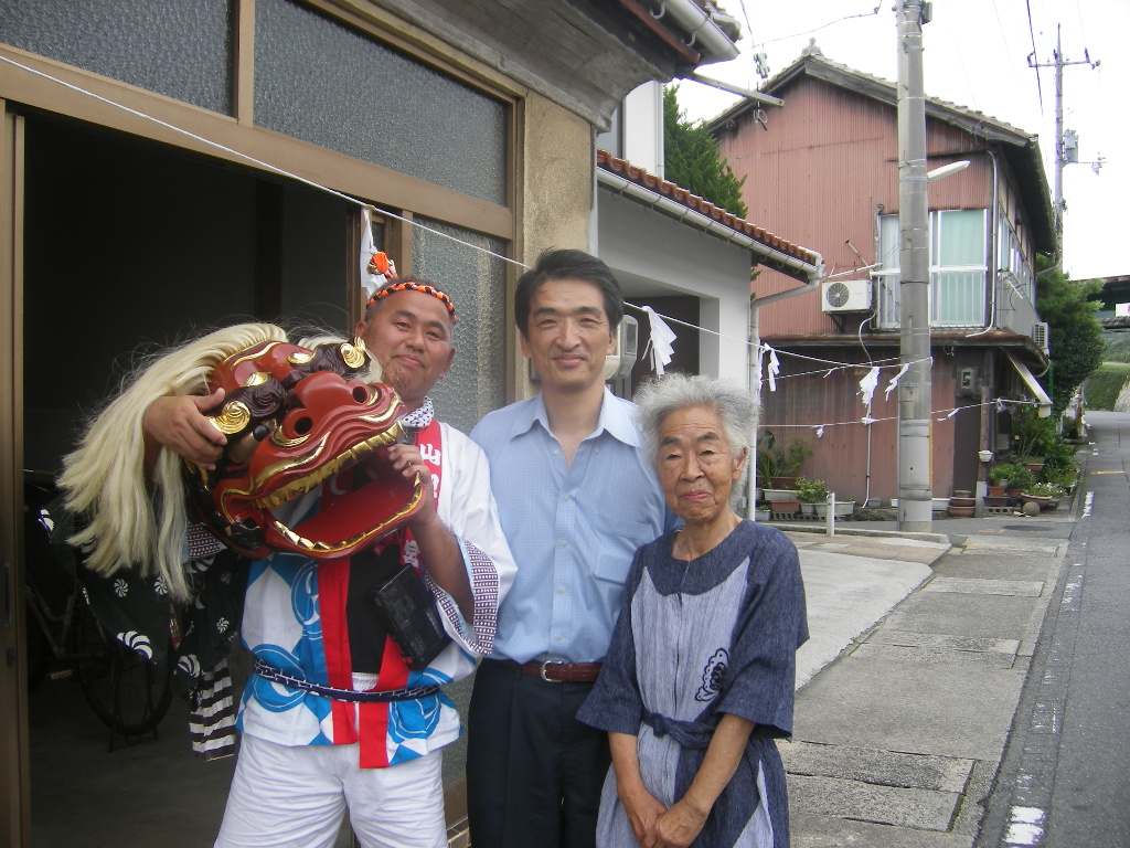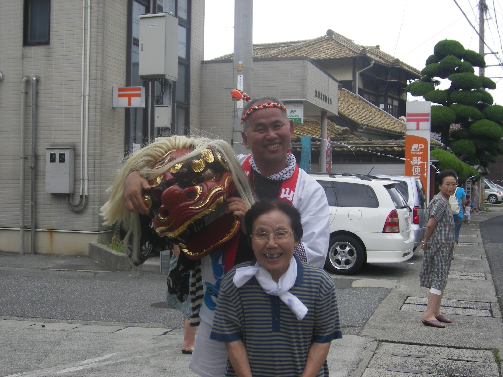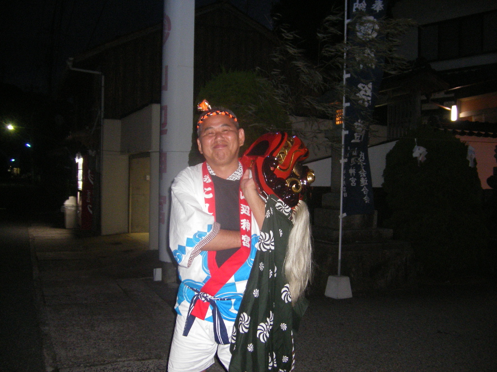 同級生テルちゃんが2年ぶりに獅子を持って登場。(昨年は、お袋さんのご不幸で不参加だった。)