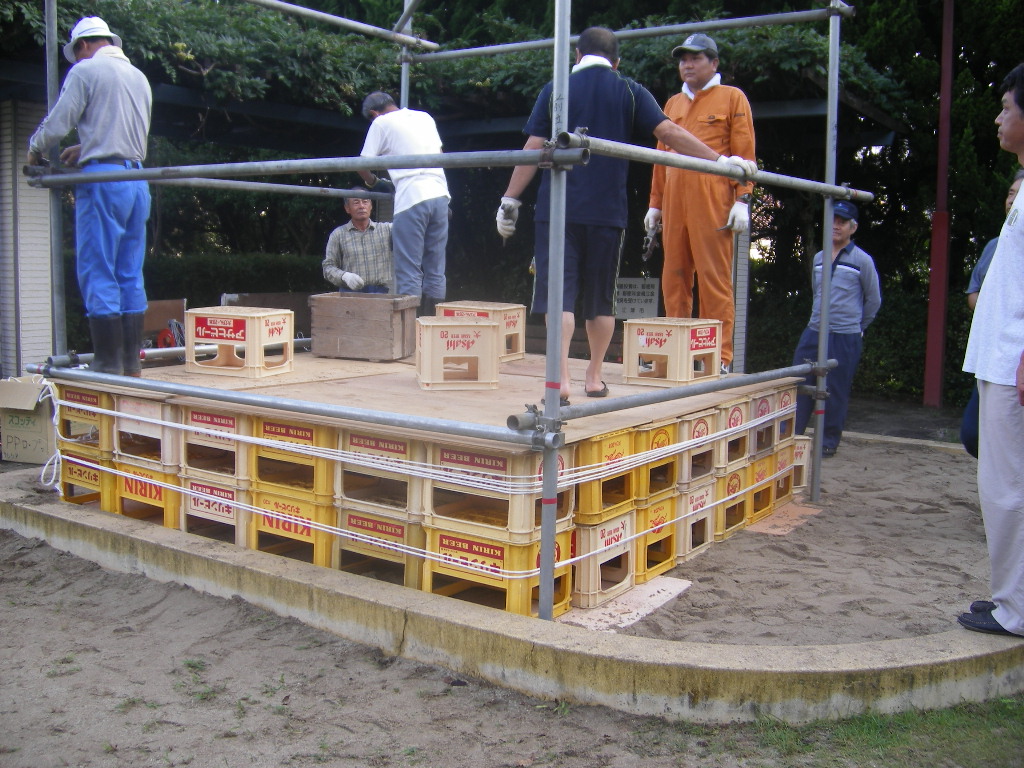 右の写真は、各銀行の合同。知り合いの支店長も頑張っていた。