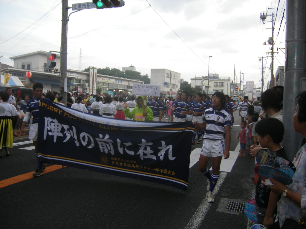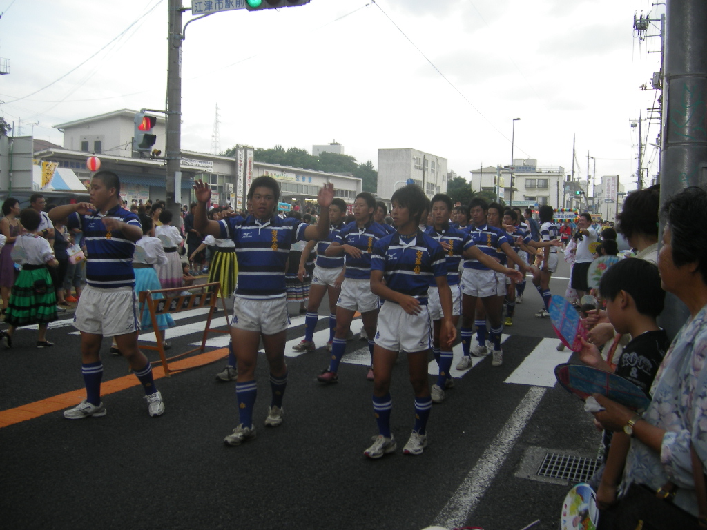 何と、智翠館高校(旧江の川高校)のラグビー部の面々。