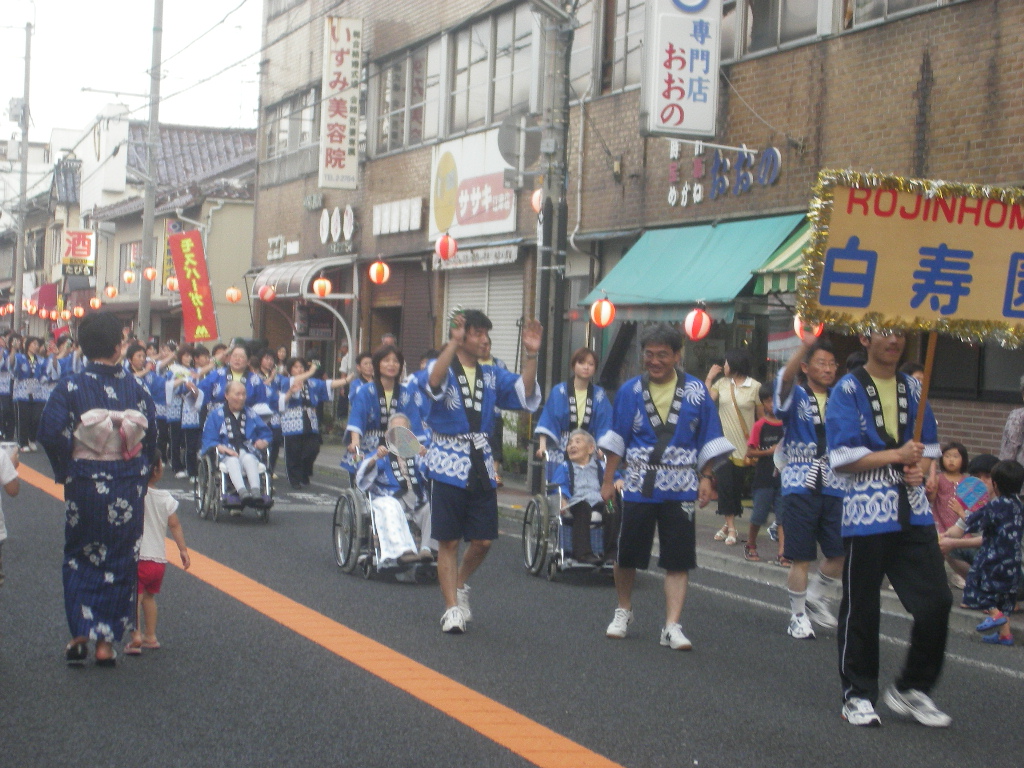 白寿園チームは、お年寄りを車イスに乗せて参加。