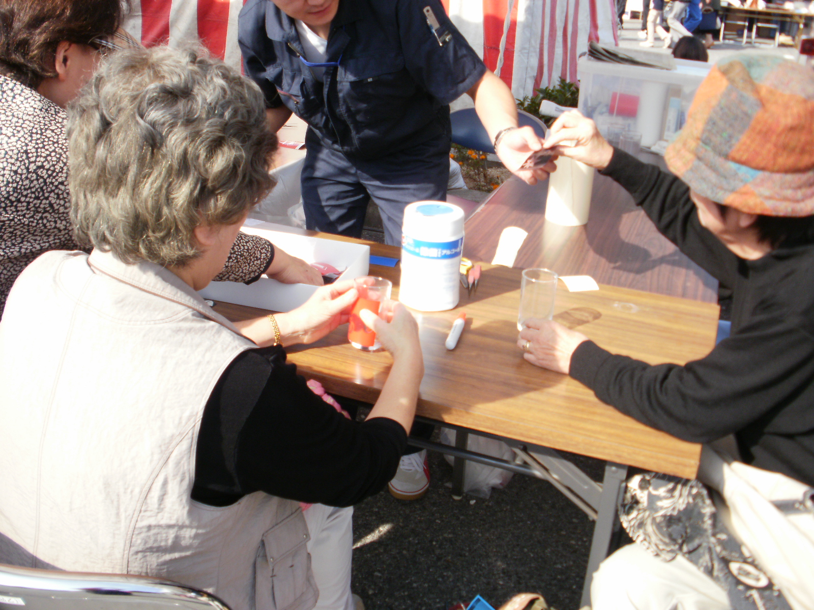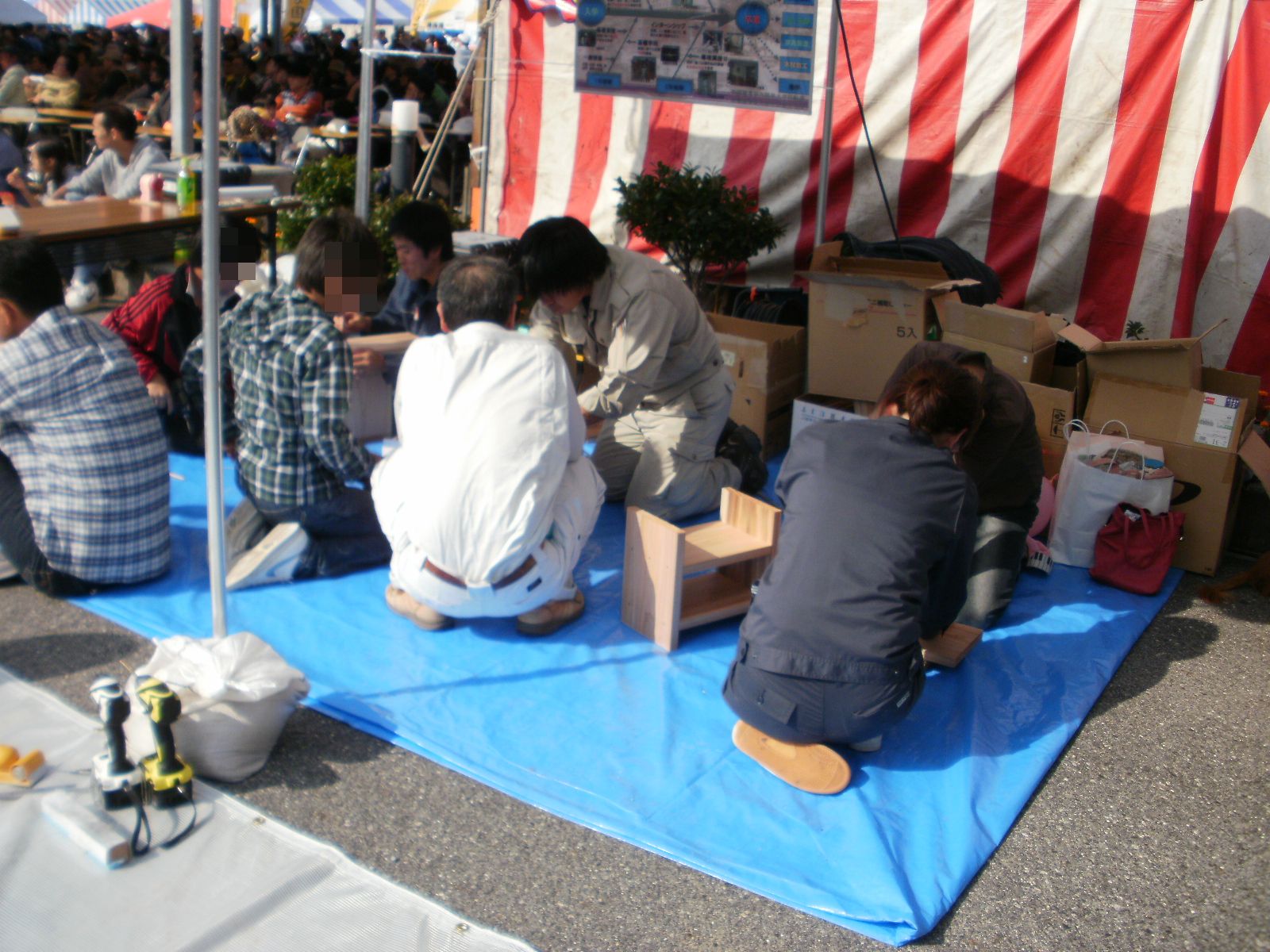 建築課の先生たちが、子供たち(一部大人の方もおられたようだが・・・)に木材加工の指導。