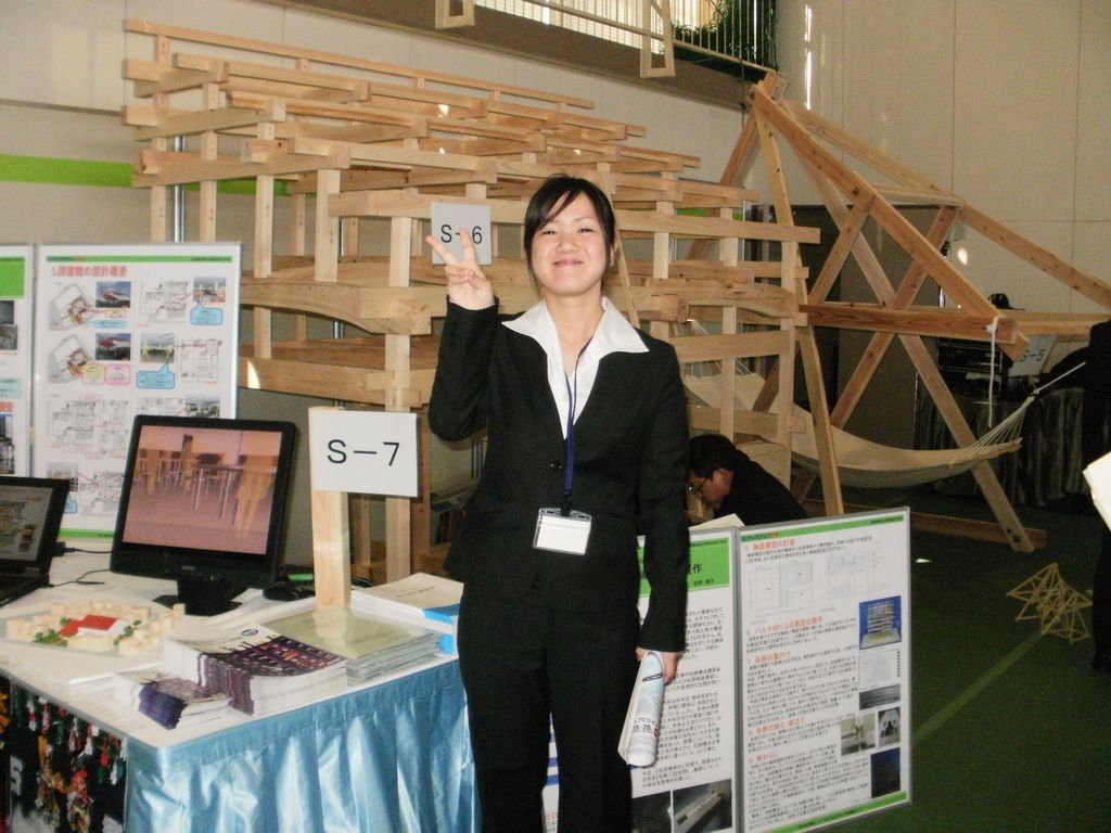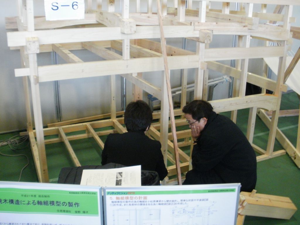 下の写真は、釘を使わない、伝統木構造の模型を作成したS嬢(左)。