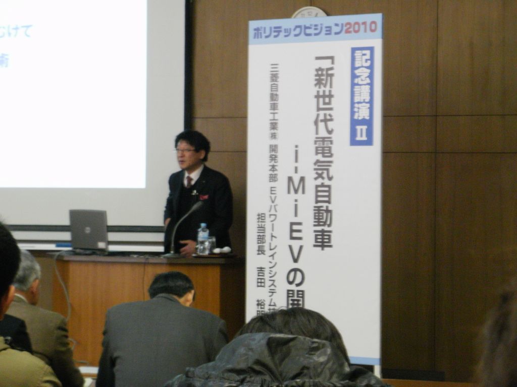 記念講演は、三菱自動車の開発部長が、電気自動車について講演。