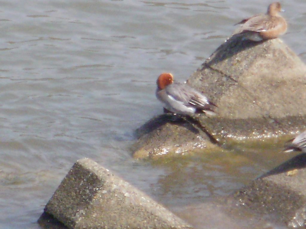 江川の土手に行って見ると、水鳥が日向ぼっこ。