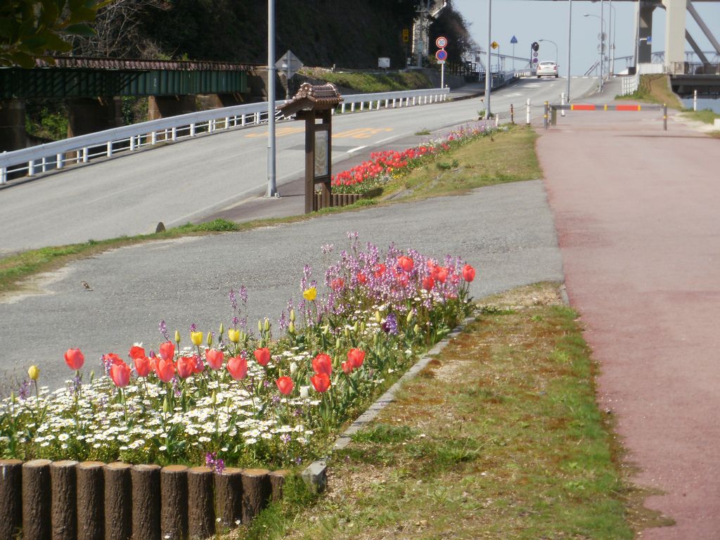 本町側の土手は、花の会の方が植えた、チューリップが咲いて綺麗です。