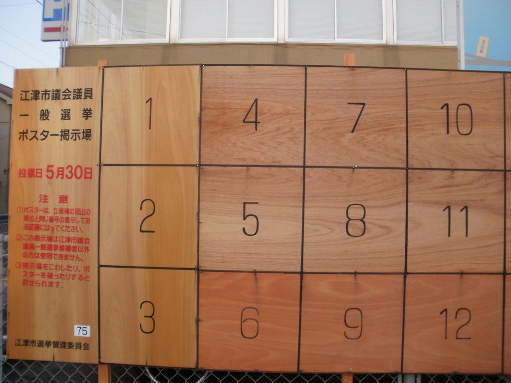 市内には、選挙ポスター用看板が準備されている。