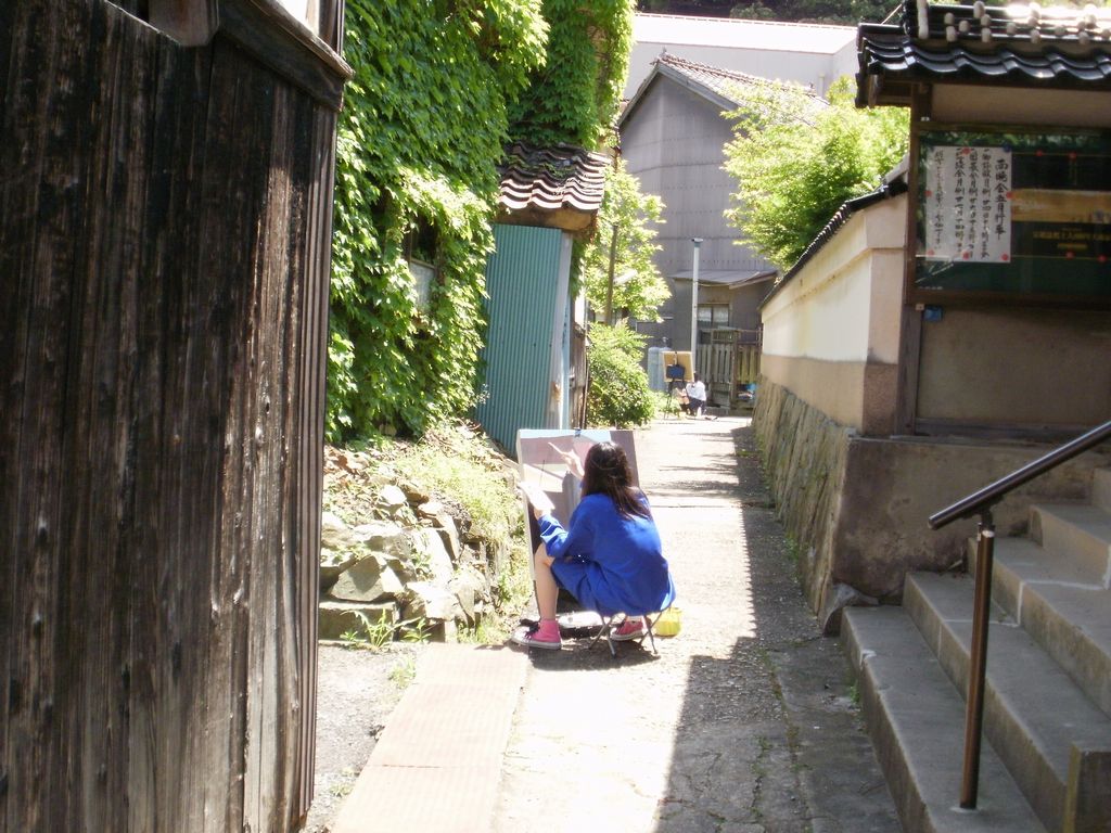 県西部の美術部の高校生が、2泊3日で甍街道の写生に来ている。
