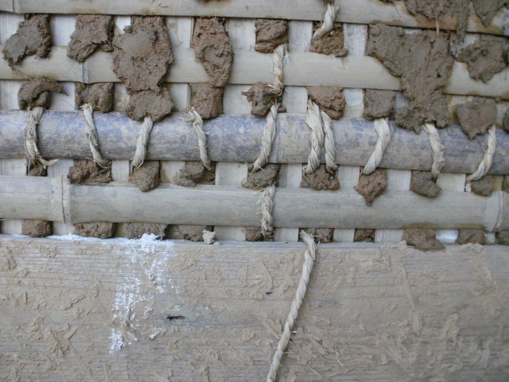土壁の下は、竹とわらひもで編んである。