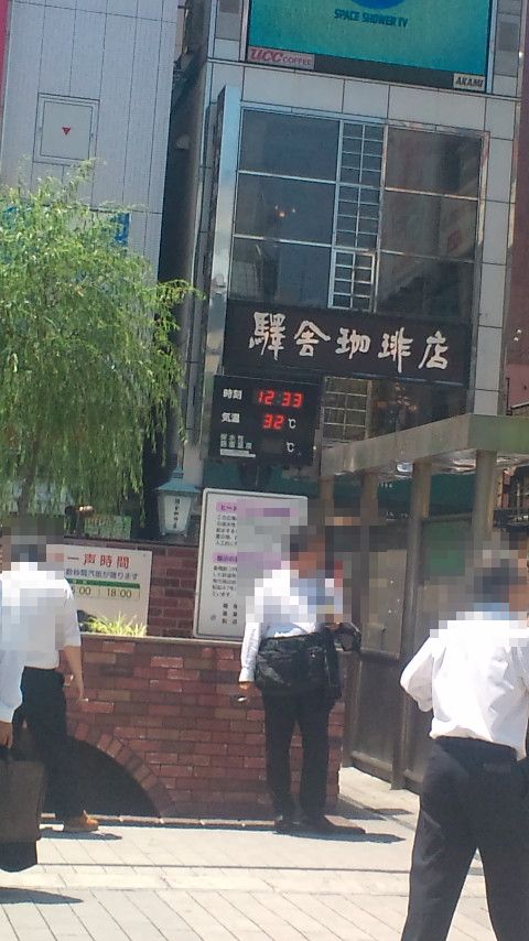 新橋にあるSL広場の寒暖計は、32度