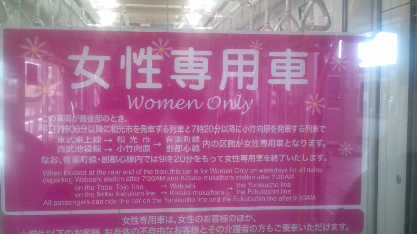 女性専用車が゛設けられていることは、知ってはいたが、条件までは知らなかった。