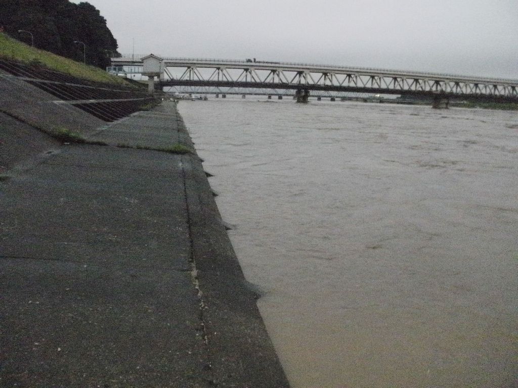 夕方、帰宅後江川に出向いてみると、かなりのうなりを上げで流れていた。