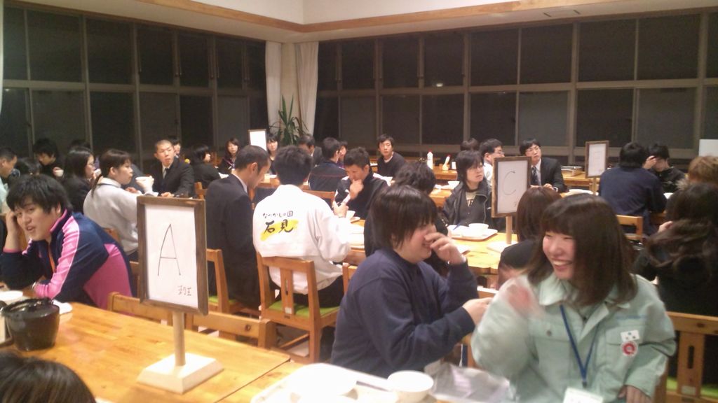 そんな中、夕方から少年自然の家に出向き、新入社員合同研修会に参加している方(51名)との食事会に参加した。