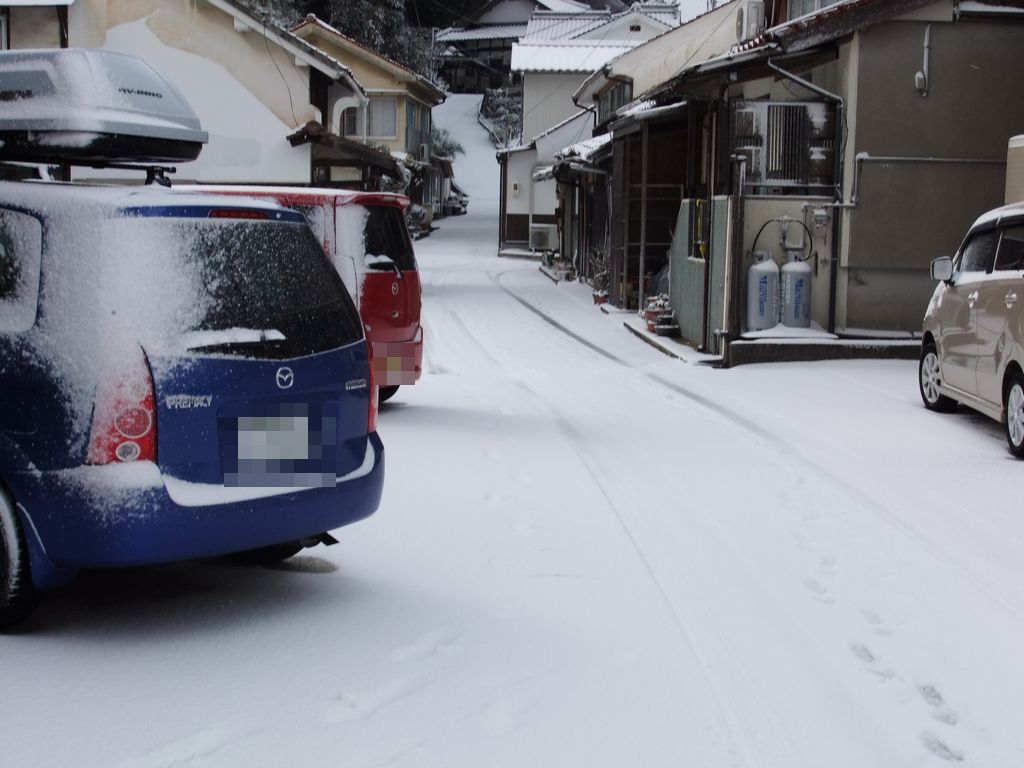全く問題なく登り坂を登り、駐車場に入っても、全く雪が無い。