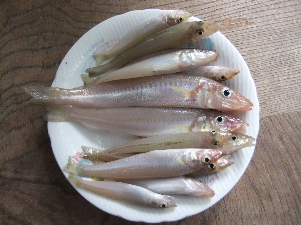 今晩は当然、キスの刺身と塩焼き。