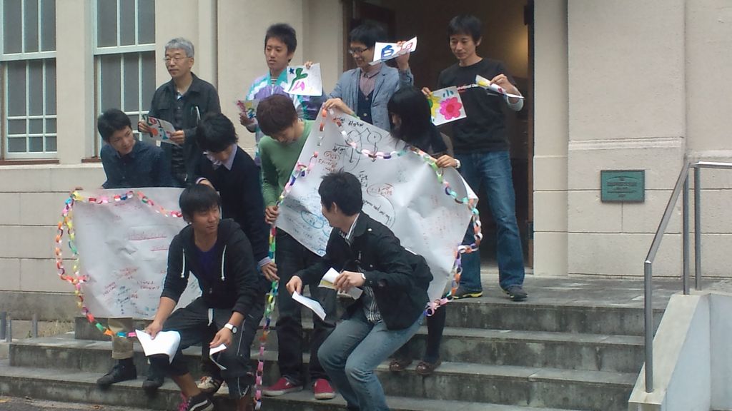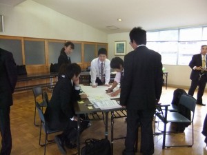 最後は、議論の中で各自が思ったことを、模造紙に書いていて、それらを持って、正面玄関で記念撮影。