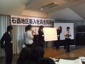 先日の新入社員研修の模様を放映してもらうべく、静止画を持ち込んだ。