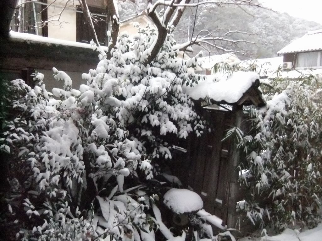 家の中に入り、中庭を見ると、そこは風がないためか、そのまま溜まった様で、結構な雪の量に見える。