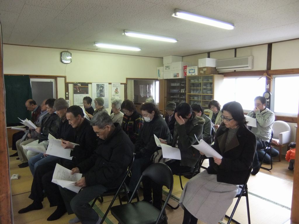 従来、座布団で座る会議だったものが、今年はパイプイスを購入し、イスでの開催。