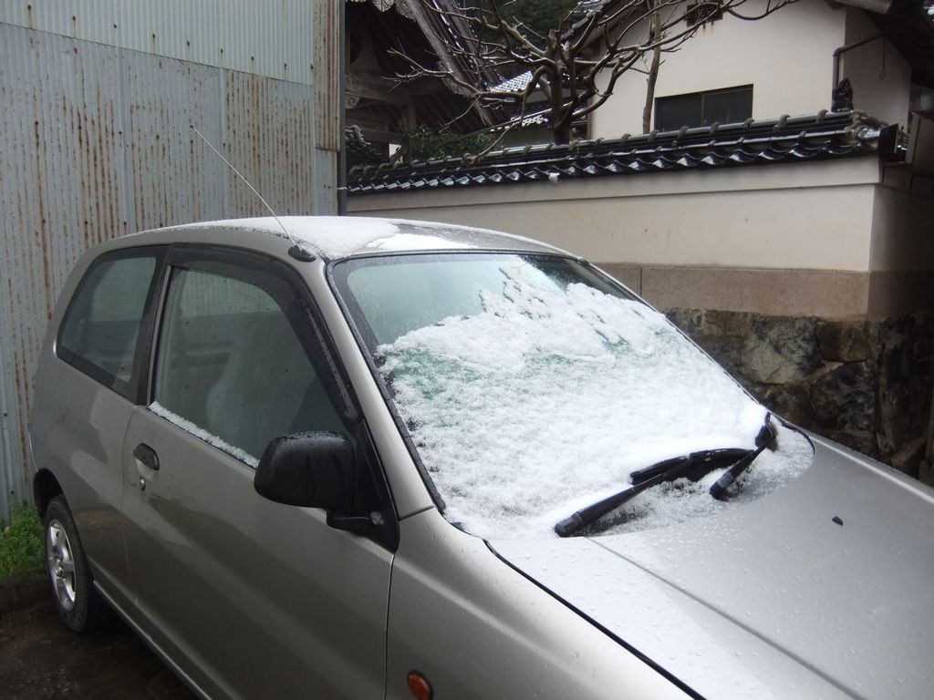明け方、何となく強い雨音を聞いていたので、アラレが降っていたのは気づいていたが、まさか積もっているとは・・・。