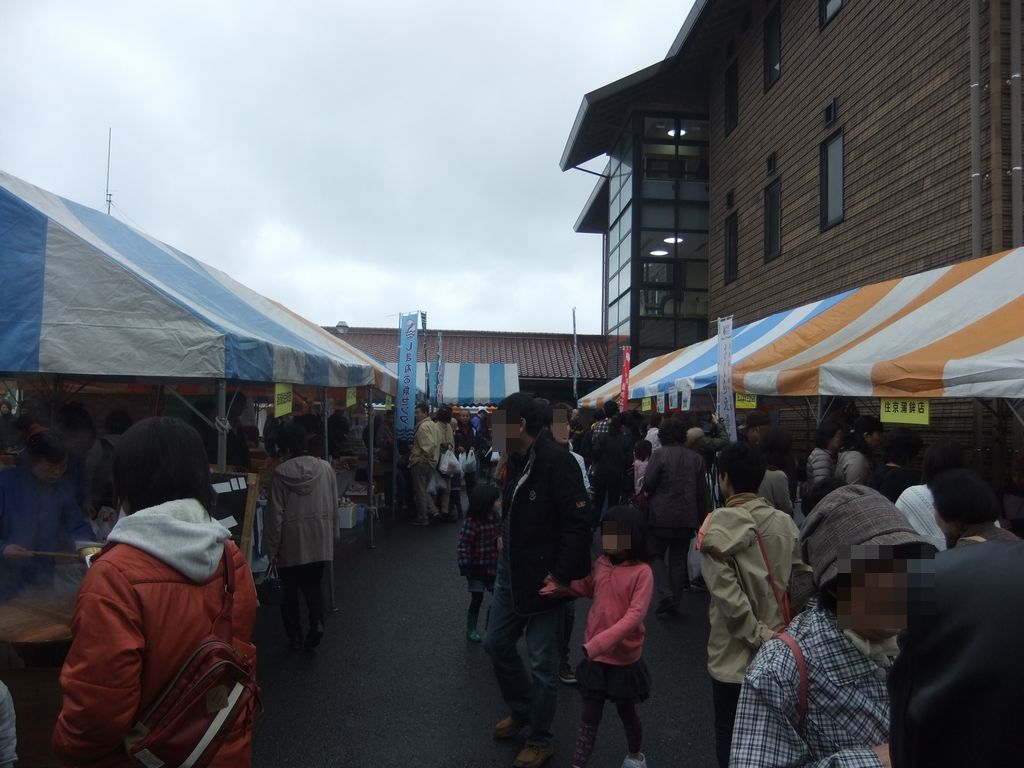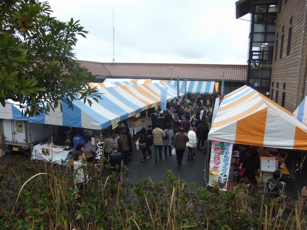 地場産センターの中庭には、地元食材のテントが並んだ。