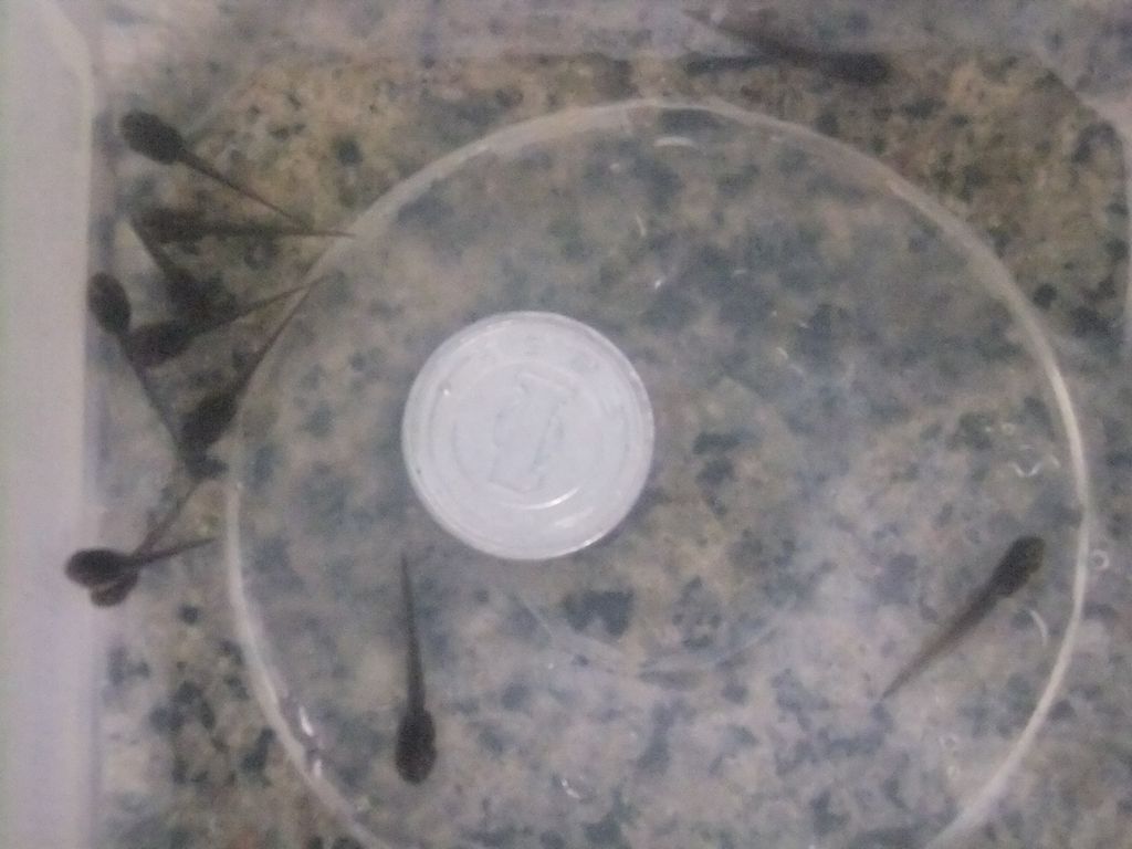 池の中が、小さな波紋が幾つも出てきていて、容器ですくってみると小さいおたまじゃくし。