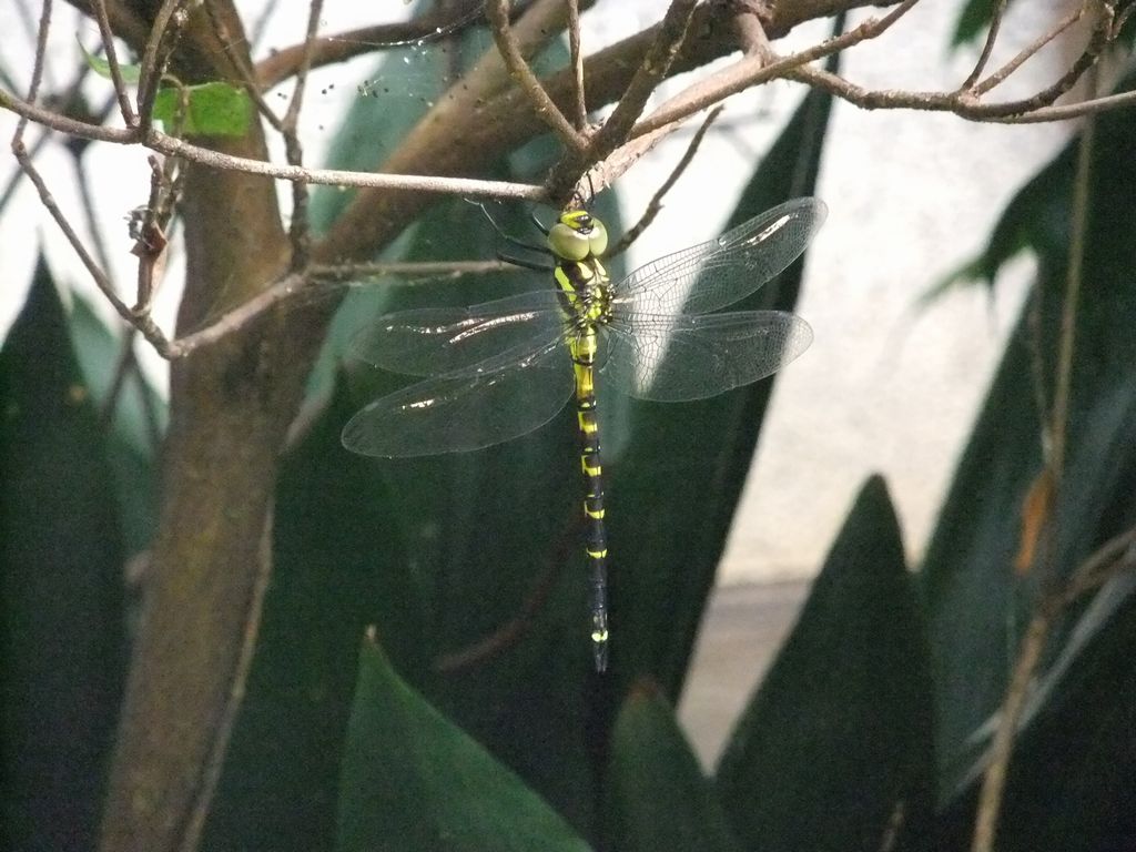午前中、中庭で、シオカラトンボの脱皮した直後を見つけた。