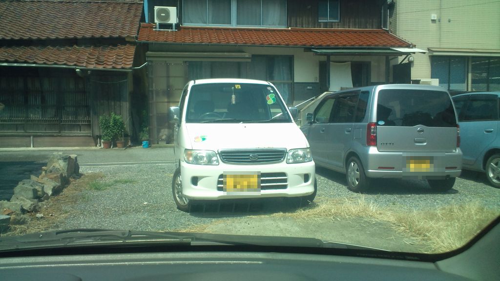 わざわざ、前を開けて奥まったところに駐車しているのは、接している道路の道幅が狭く、対向車を交わすときとか、宅急便が一時停止するのに、使ってもらえばよいと思っている為。