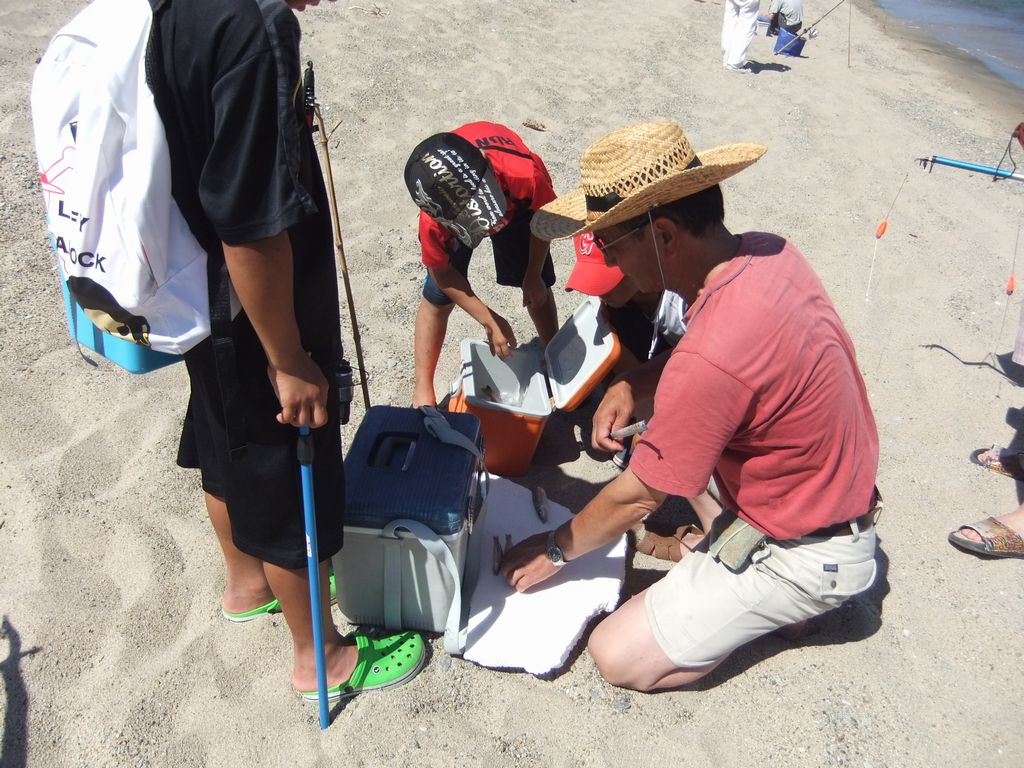 朝7:30 集会所に集合して、8:00から塩田海岸でのキス釣り大会。