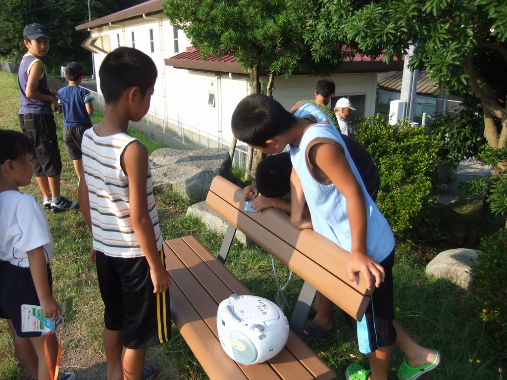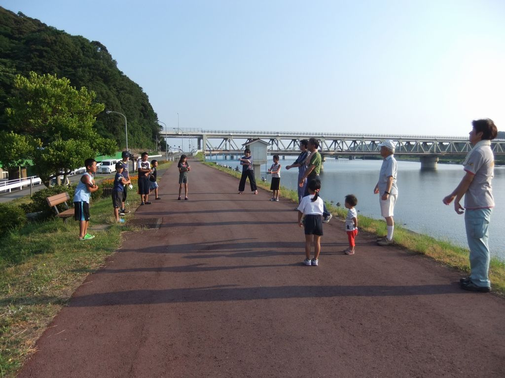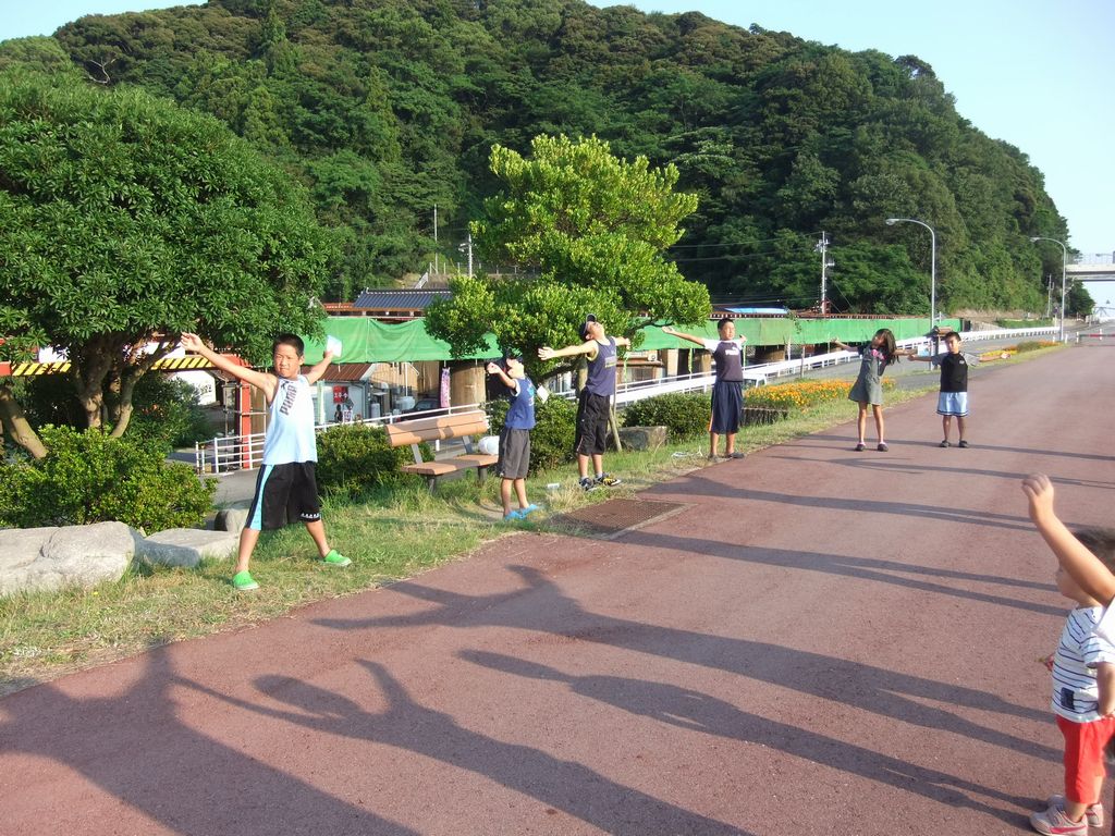 その後、江川土手に移動して、子供会のラジオ体操に参加。