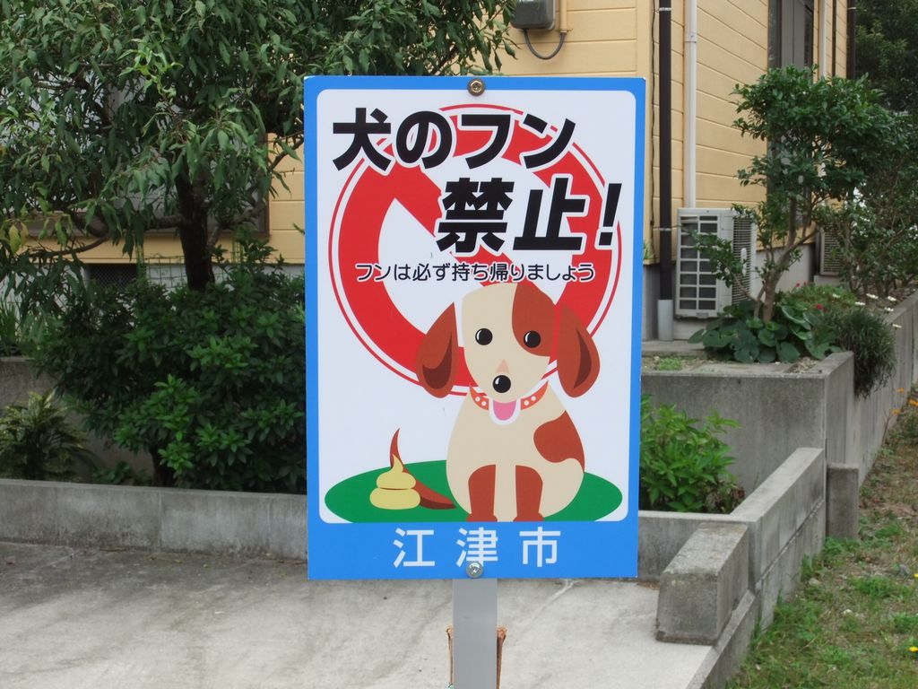 江津市が、「犬のフン禁止」の立札を立てたようだ。