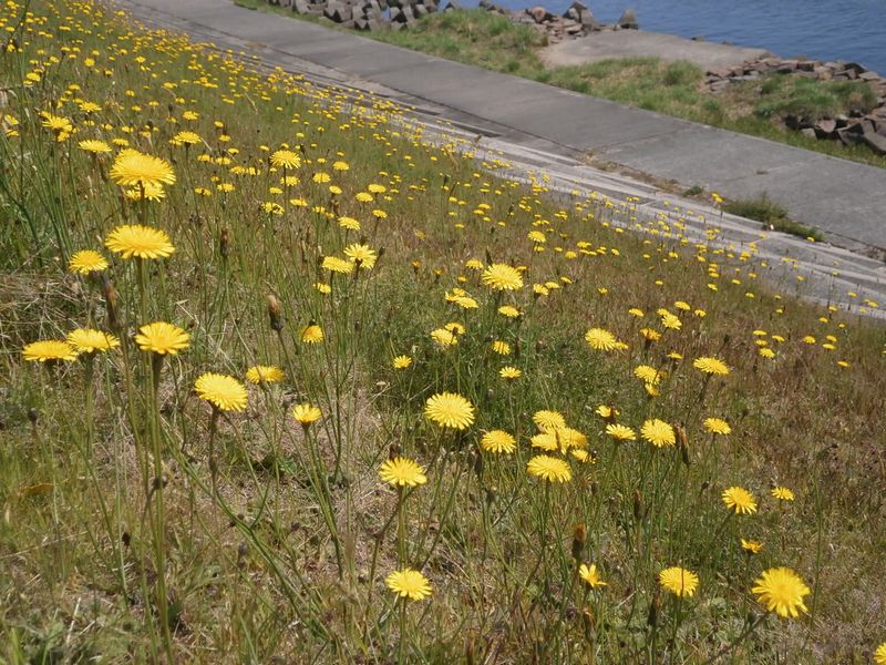 土手には、昨年紹介した「ブタナ」の花が咲き、春爛漫。