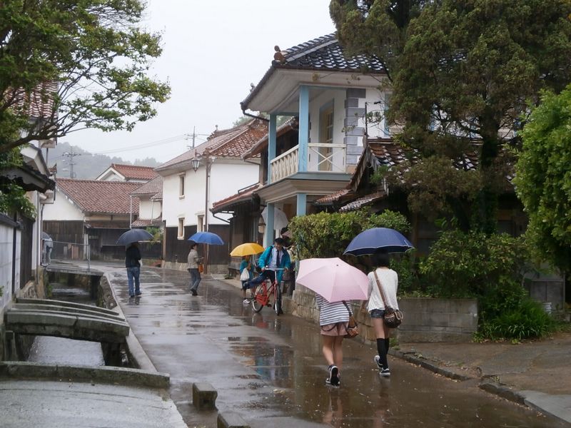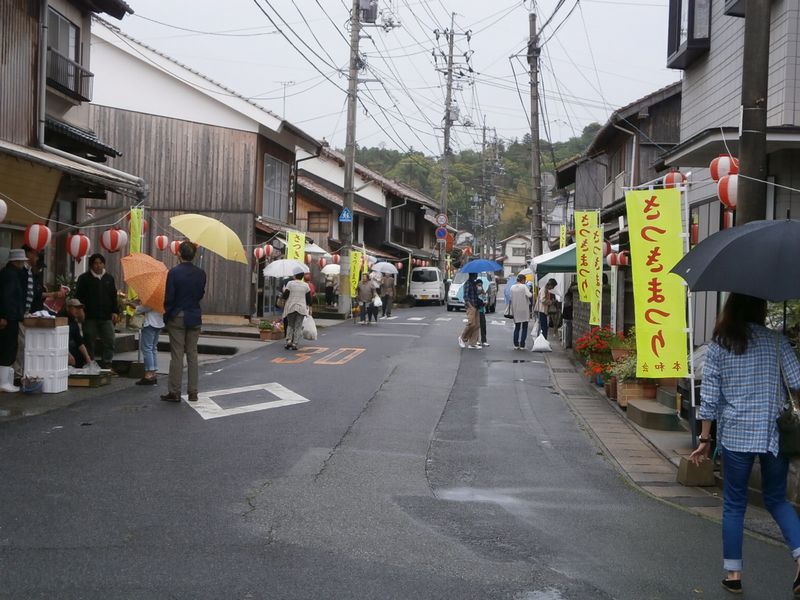 旧郵便局の前の道は、昨年は工事中だったが、今年はその工事も終了したが、残念ながら雨の為、人はまばら。