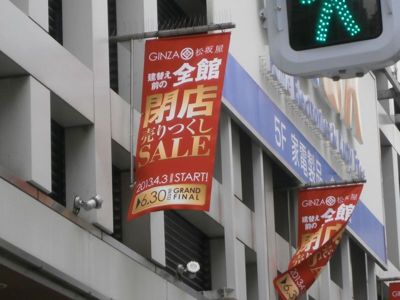 松坂屋の閉店セール。一瞬「無くなるの?」と思ったが、よく見ると「建て替え」とあった。