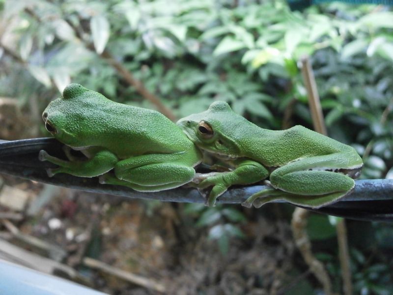 以前にも、報告した中庭に住み着いている、モリアオガエルが毎晩毎晩うるさくて・・・。