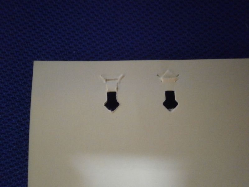 ゆっくり動作を確認すると、1回の動作で、まず矢印状の穴とコの字の穴を空け、矢印状の形に切れた端をコの字の穴にねじ込むまで。