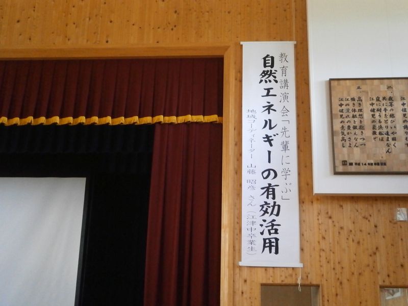 1時間ほど、自然エネルギー発電の事と将来の電気(スマートグリッドのさわりも含め)について講演させてもらった。