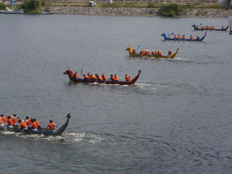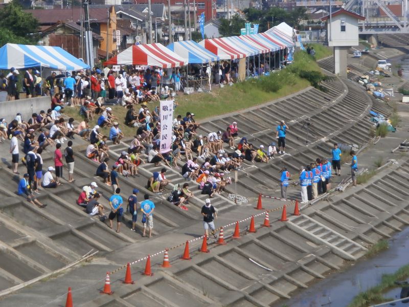 朝9時から、江川で、これまた恒例のオロチボートレース。