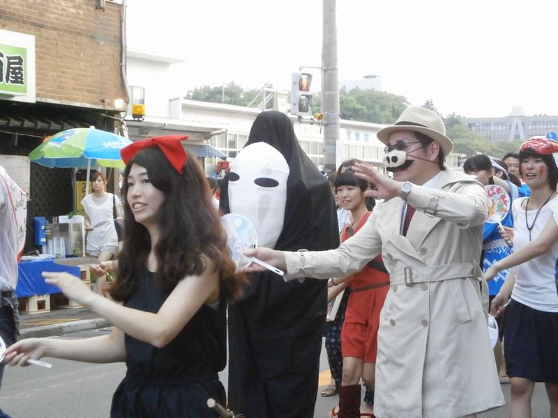 この日は、国道9号線は通行止めとなり各所に屋台も出ている。