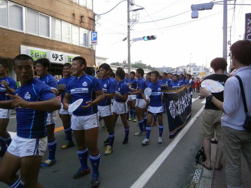 智翠館高校ラグビー部は、毎年参加していて慣れたのか、踊りはもう一つだが、歓声を上げながら盛り上げ。