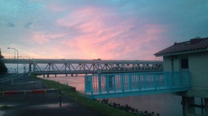 夕方(6時40分ごろ)、雨が上がっていたのでウォーキングに江川沿いに出てみるとなんと夕焼け。