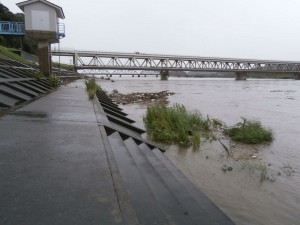 9/4 台風17号の影響による各地の雨量が増え、その為江川の水位が上昇しています。