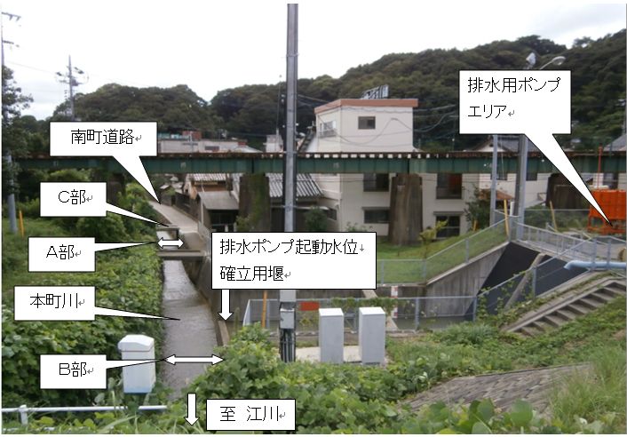 その差の為に、A部近郊では、川は溢れB部では余裕で流れている現象が発生。