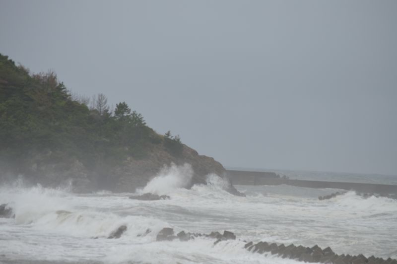 お昼過ぎに、出かけたついでに塩田の海岸に行って見ると、台風の影響で大荒れ。