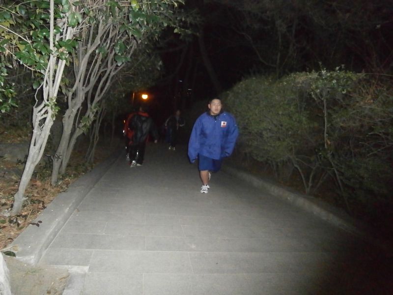 生徒たちは、1時間、走り込み暗い中汗を流していました。