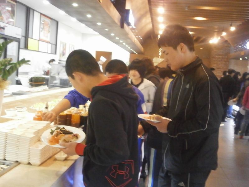 17:30に体育館を後にし、バイキングレストランに移動し合同食事会。