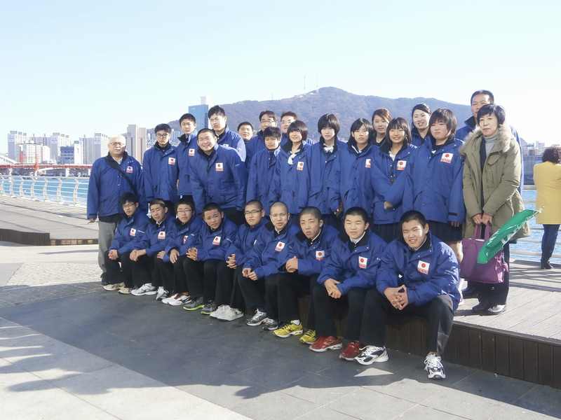 12/26から、島根県内の中学生と釜山の中学生の柔道の交流に同行した。