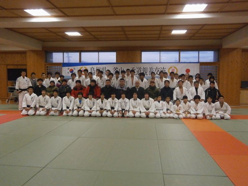 昨年末、ボランティアで島根県の中学生と釜山の中学生の柔道交流の為に、釜山を訪れたが、今回は、島根県中学生柔道三隅大会に出場の為に、釜山の安楽中チームが来日し、今日は江津中で練習をしているとの事で出向いた。