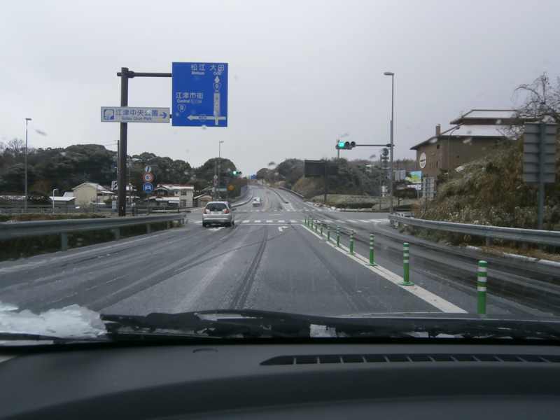 途中の浜田市内に近づくにつれ、どんどん雪が降り積もり、白線が見えなくなった。