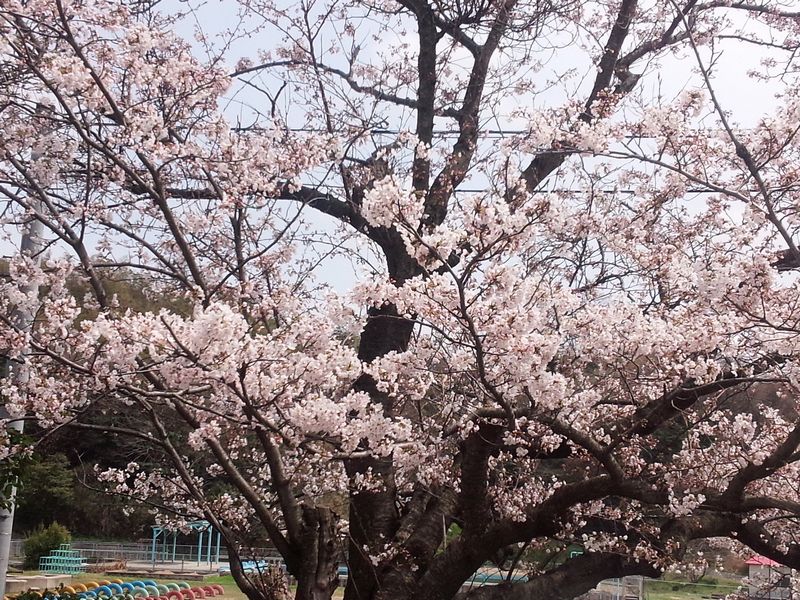 今日(3/31)は、朝から晴天で、郷田小学校の体育館前の桜も満開間近となっていました。