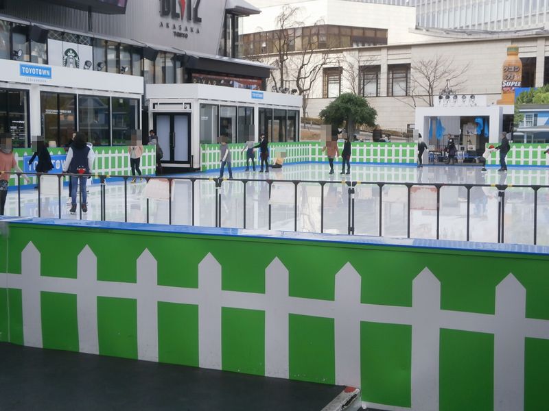 TBSの正門の方に歩くと、なんとそこに屋外アイススケート場。
